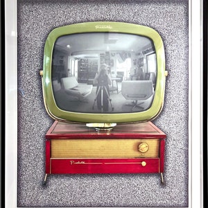 Please stand by Farnsworth Television Pop TV Art, Original photo, vintage graphic, archival ink & paper, wood frame, plexiglass