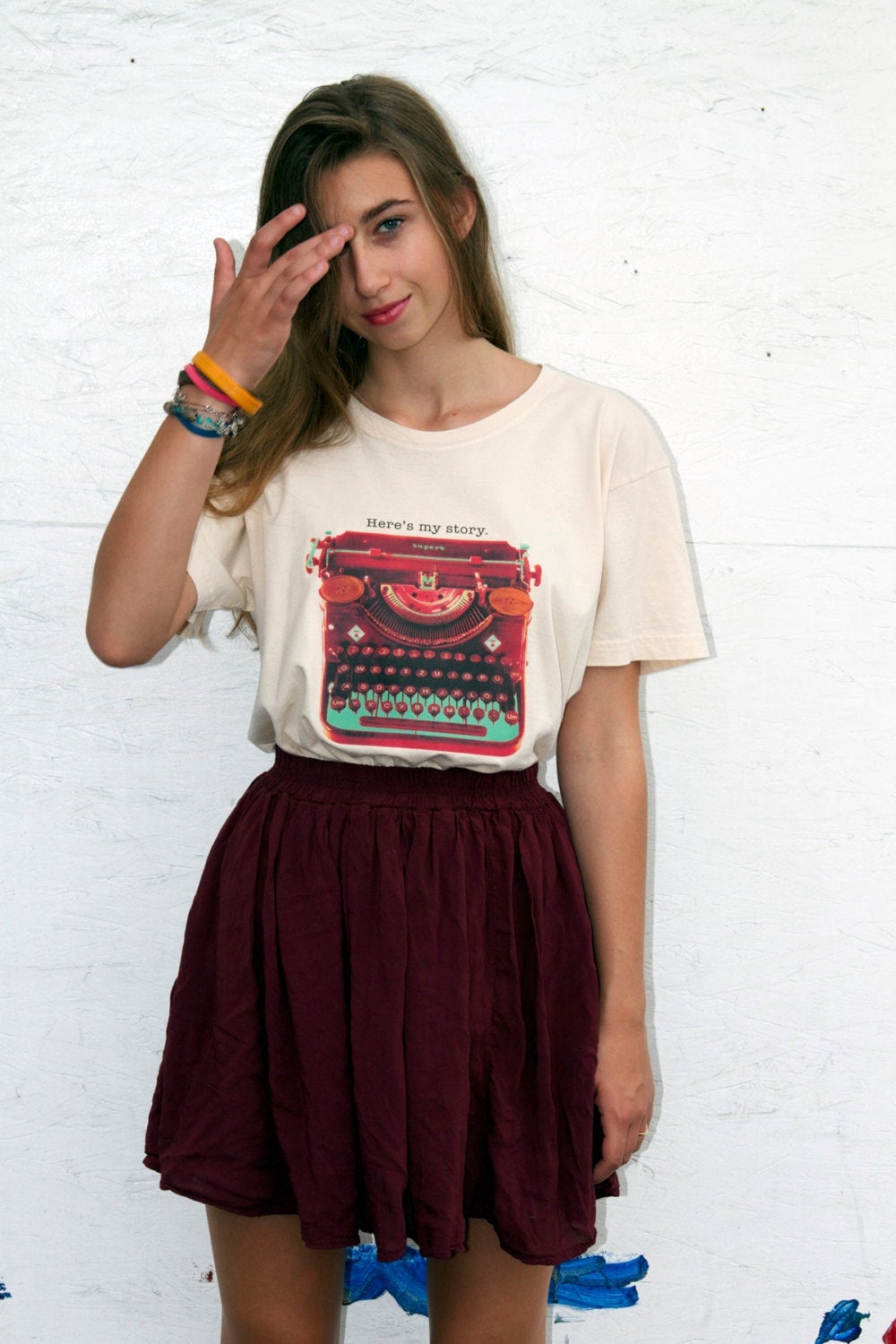 "Here's my story" is a great ice-breaker T-shirt. It's a Unisex style original Typewriter Art wearable...