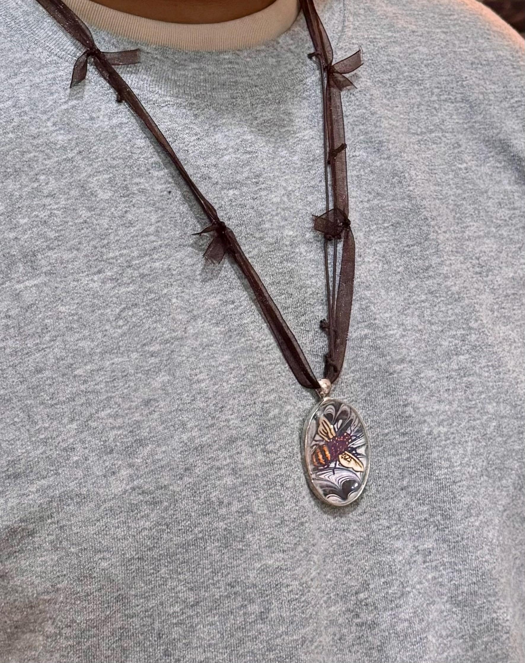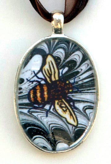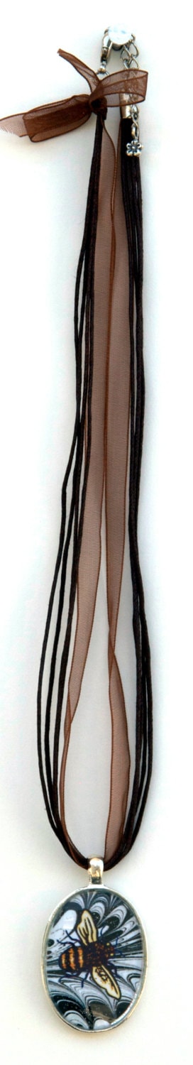 These pendant necklaces are elegant and are made with contemporary original artwork. It is printed with archival ink on metallic white stock, and is cut and set. Ribbon-n-Cord colors are 18".